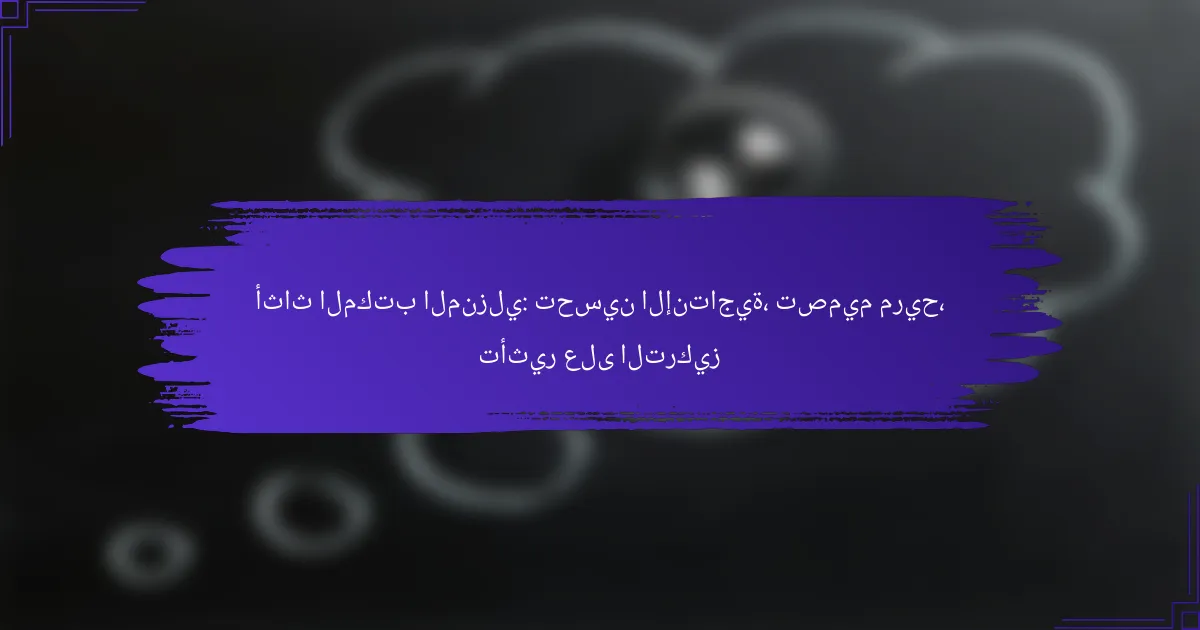 يؤثر أثاث المكتب المنزلي بشكل كبير على الإنتاجية من خلال توفير بيئة عمل مريحة ومنظمة. اختيار الأثاث المناسب يمكن أن يعزز التركيز ويقلل من التعب البدني، مما يؤدي إلى زيادة الكفاءة في إنجاز المهام.